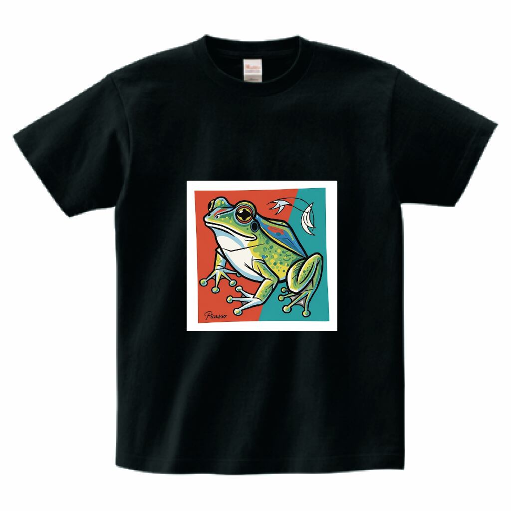 大胆な色彩と抽象的なラインで描かれた、ピカソ風のアートカエルが主役の1枚。
