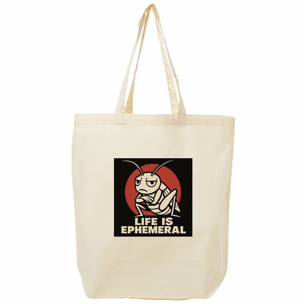 レプタルワークの人気キャラ「コオロギ先輩」から、哲学的メッセージが詰まったトートバッグが登場。